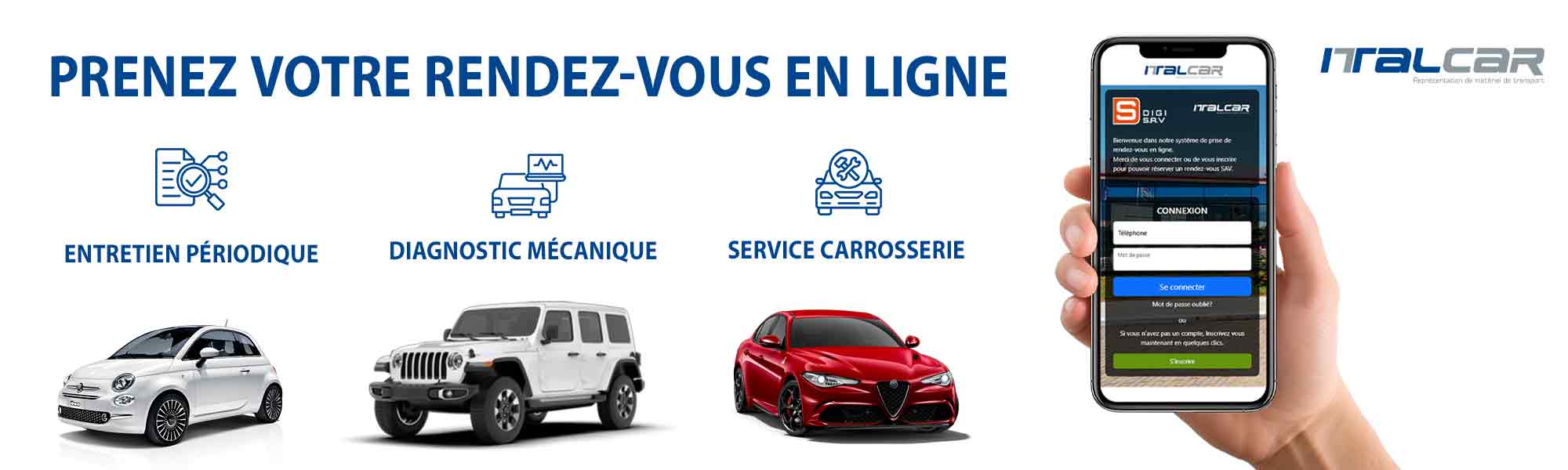 Prise de rendez-vous Bienvenue dans notre système de prise de rendez-vous en ligne Italcar. Merci de vous connecter à notre outil de prise de rendez-vous en cliquant sur le bouton ci-dessous.